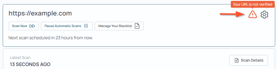 Verifying your website proves that you own or manage it, and unlocks higher scan limits and additional settings.